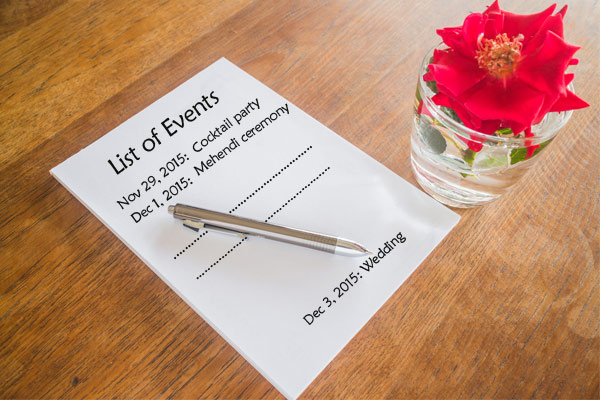 - Once the events are finalised, allocate the responsibilities to your family members and friends accordingly.