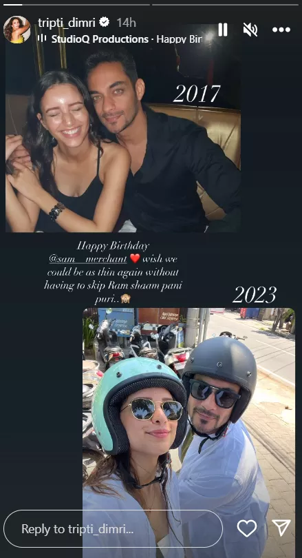 Triptii made headlines due to rumours of her relationship with the businessman, Sam Merchant that surfaced on the internet in December 2023. At that time, the Animal actress was photographed at a wedding that both Sam and Triptii attended. On January 30, 2024, Triptii took to her Instagram stories and posted a quirky birthday wish for her alleged boyfriend, Sam Merchant. She uploaded a throwback picture from 2017 and another recent photo from 2023, and wrote atop the collage: