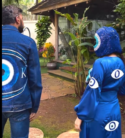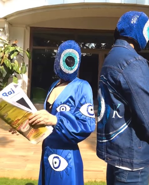 Taking to her IG handle a while ago, Uorfi Javed dropped a collaborative video with Raj Kundra. In the video, Raj and Uorfi can be seen twinning in blue-hued evil-eye-themed outfits. While Uorfi opted for a black dress, which she teamed up with a face mask and a jacket adorned with evil eyes, Raj, on the other hand, can be seen wearing a white T-shirt, which he paired with a blue evil eye-themed jacket and jeans. Sharing the video, Uorfi wrote: