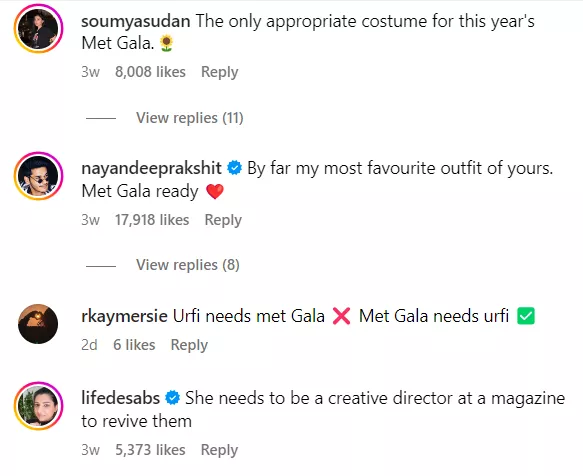 Previously, Uorfi mesmerised everyone by donning a 3D floral dress. Her black gown featured a billowing silhouette and 3D flowers attached to it. Moreover, what caught everyone’s attention was that when she clapped, a few butterflies flew out of those flowers, leaving the internet completely stunned. Afterwards, many netizens even commented and asked her to take part in the Met Gala.