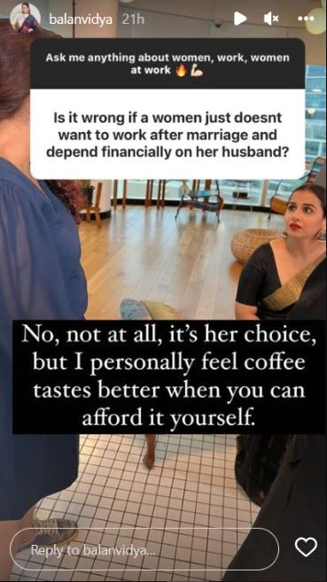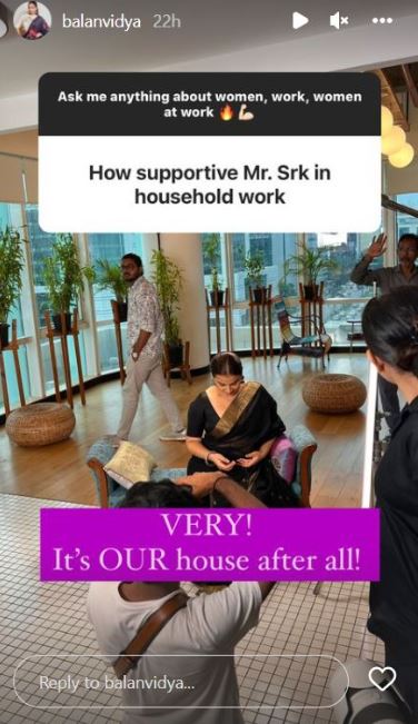 In the same session, one user asked her how her work life changed after marrying her darling husband, Siddharth Roy Kapur. To this, she replied, "It did, for the better. It was 'I work' before, it became 'We work' now." Vidya also spilt some beans by answering whether her hubby helps her or not in the household works by saying, "Very! It’s OUR house after all!" Another fan of hers asked if being financially dependent on their husband is wrong. To which, the actress answered: