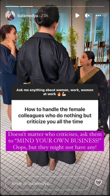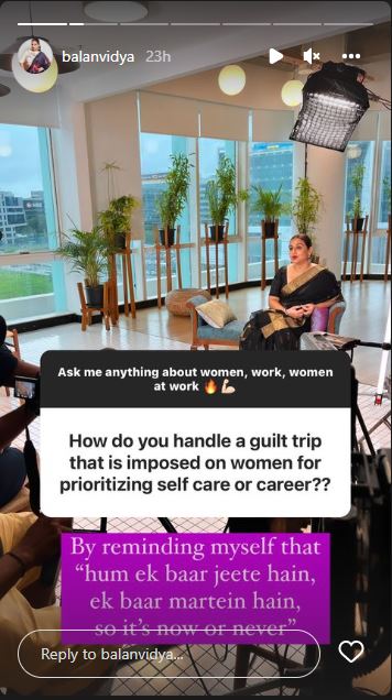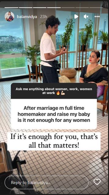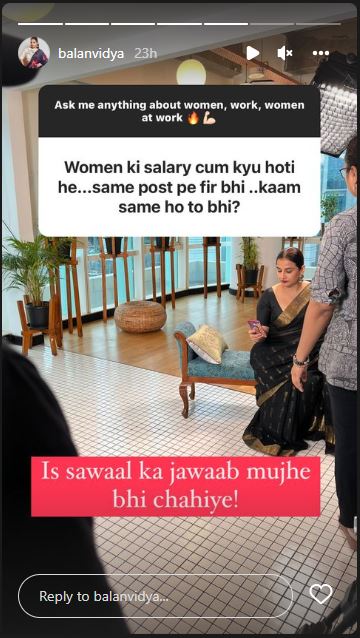 On August 5, 2022, Vidya Balan hosted a #AskMeEverything session on her IG handle, and her fans asked her many questions related to "Women, work and women at work". Not only that, Vidya too gave befitting answers to each one of them. When one of her fans wrote, "Women can’t do things", to this, Vidya penned, "Are you telling me or asking me." She was also asked why women are being paid lesser than men. To this, Vidya replied, "Is sawal ka jawab mujhe bhi chahiye." Vidya also gave some witty responses on how women should deal with guilt trips of prioritising themselves, whether there is anything wrong with being a homemaker, why most company CEOs are male and many more. Check out: