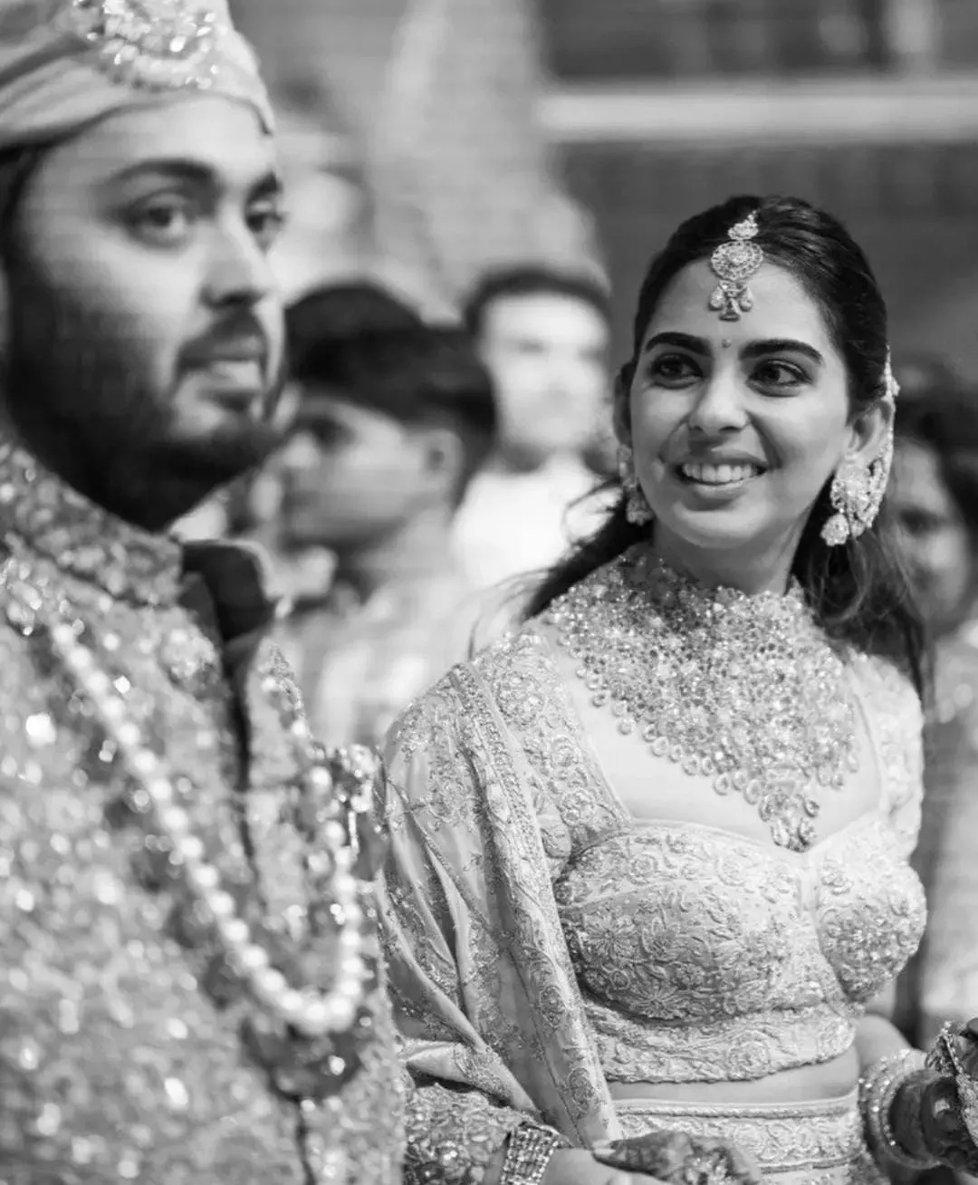 In another unseen photo that surfaced online, Isha Ambani can be seen looking at her brother, Anant, who was decked up as a dulha to get married to his ladylove, Radhika. Isha was seen flaunting her million-dollar smile and looking at her brother. The candid moment was enough to speak volumes about the happiness the young heiress was beaming with.