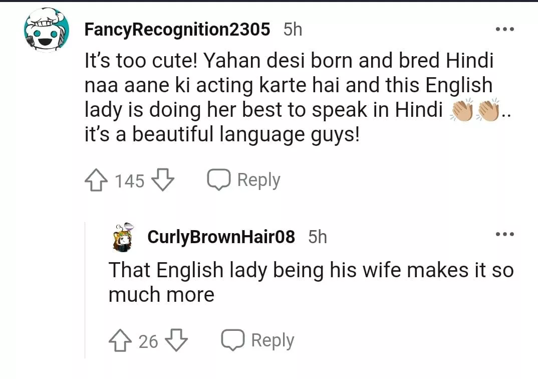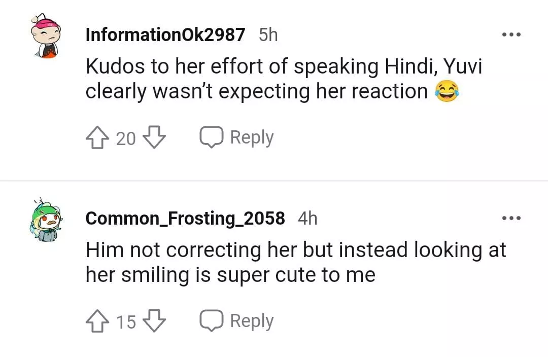 As soon as the video was posted on Reddit, netizens rushed to the comments section to pour their reactions. While a few complimented Hazel's Hindi speaking skills, a few made fun of Yuvraj. One of the netizens mentioned, "Kudos to her effort of speaking Hindi, Yuvi clearly wasn’t expecting her reaction", followed by a face with a tear of joy emoji. Another comment read as: