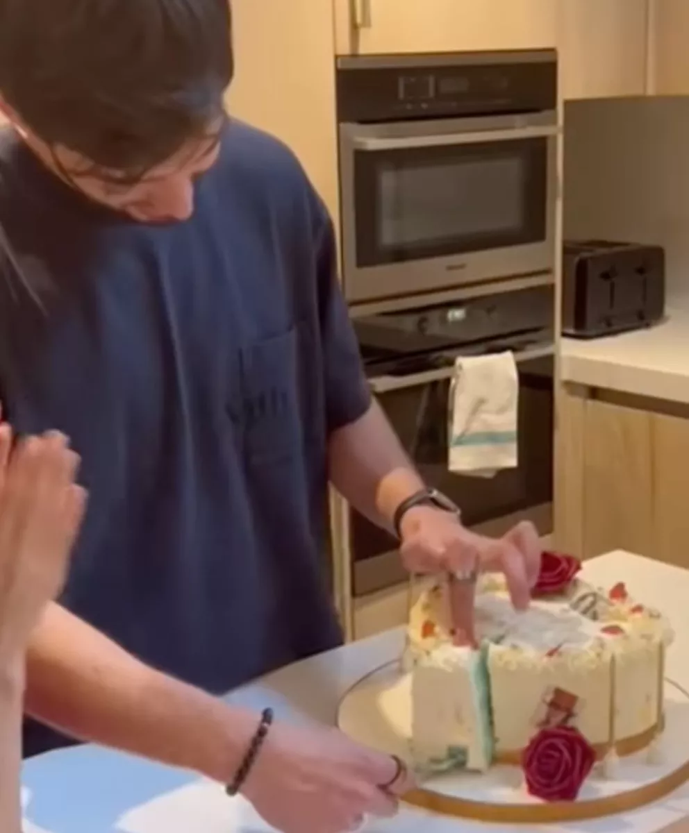 In the clip, he is cutting the cream-coloured cake with a red rose on top of it. After cutting the cake, there was a blue frosting inside it. The blue colour inside the cake revealed that they were going to get blessed with a baby boy, and Liz looked the happiest as she clapped after cutting the cake. Atop the video, she had written: