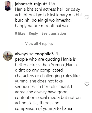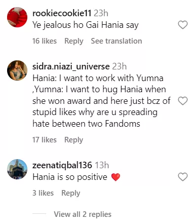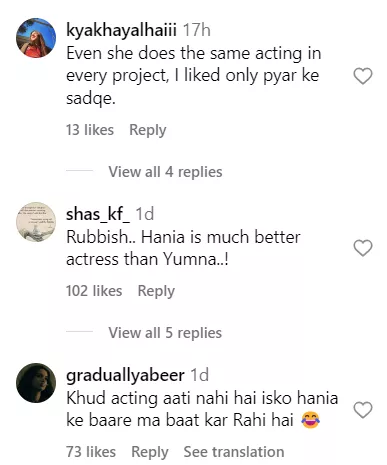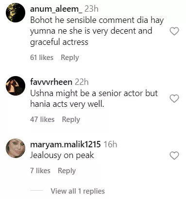The same segment from the show was shared by WOW 360 on their official Instagram page. As soon as the video was posted, the netizens started penning their thoughts in the comment section of the post. One user wrote, “Ewwww she is so jealous of Hania.” Another one said, “Hania is much better then you madam she is 100 out of 100 har tarike ki acting me.” A third comment can be read as “Hania b like chill bro I don't care..I bet she don't give a damn thts the best part thing about hania she is so happing n chill.” Check out the other comments: