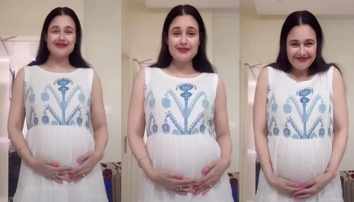 Taking to her IG handle, Yuvika Chaudhary shared a video, wherein she can be seen clad in a white-hued sleeveless kurta with blue embroidered work atop it. The mumma-to-be's pregnancy glow was simply unmissable, and she could be seen dancing to the song, Vatavaran, so adorably that it won our hearts. A soft touch of makeup, red lipstick, and open hair added stars to her look. After some time, Yuvika flaunted her baby bump by tightening her kurta in the belly area, and oh boy, how cute it was! Sharing the video, she penned a few emoticons.