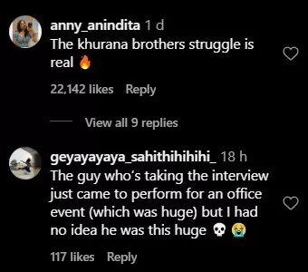 As soon as the video went viral, netizens rushed to the comment section and filled it with their opinions. Moreover, netizens cannot just stop hyping the Khurana brothers' glow-up and their hard work. Reacting to the video, one user wrote, "The Khurana brothers struggle is real." Another user penned, "Now this is called real struggle." A third comment reads, "Asliii glow up to inhoneee kiaa hai bhai." Check out the comments below:
