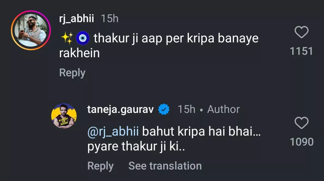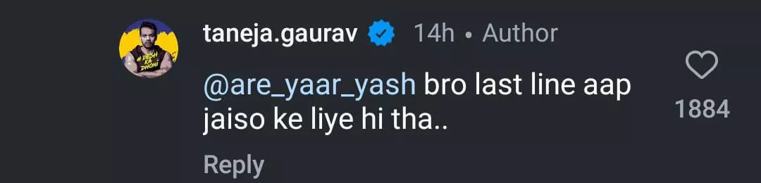 Although Gaurav didn't talk about the reunion in his current post with Ritu, he has been positively responding to the congratulatory messages from their well-wishers and thanking god as well. On the other hand, some users also claimed that the Taneja family made all fools, and the buzz was created just to be in the limelight. Well, Gaurav replied to such a user and called him 'insensible' indirectly. The last line of his caption on his and Ritu's post was, "Every sensible person would understand this." And replying to the mockery, he wrote: