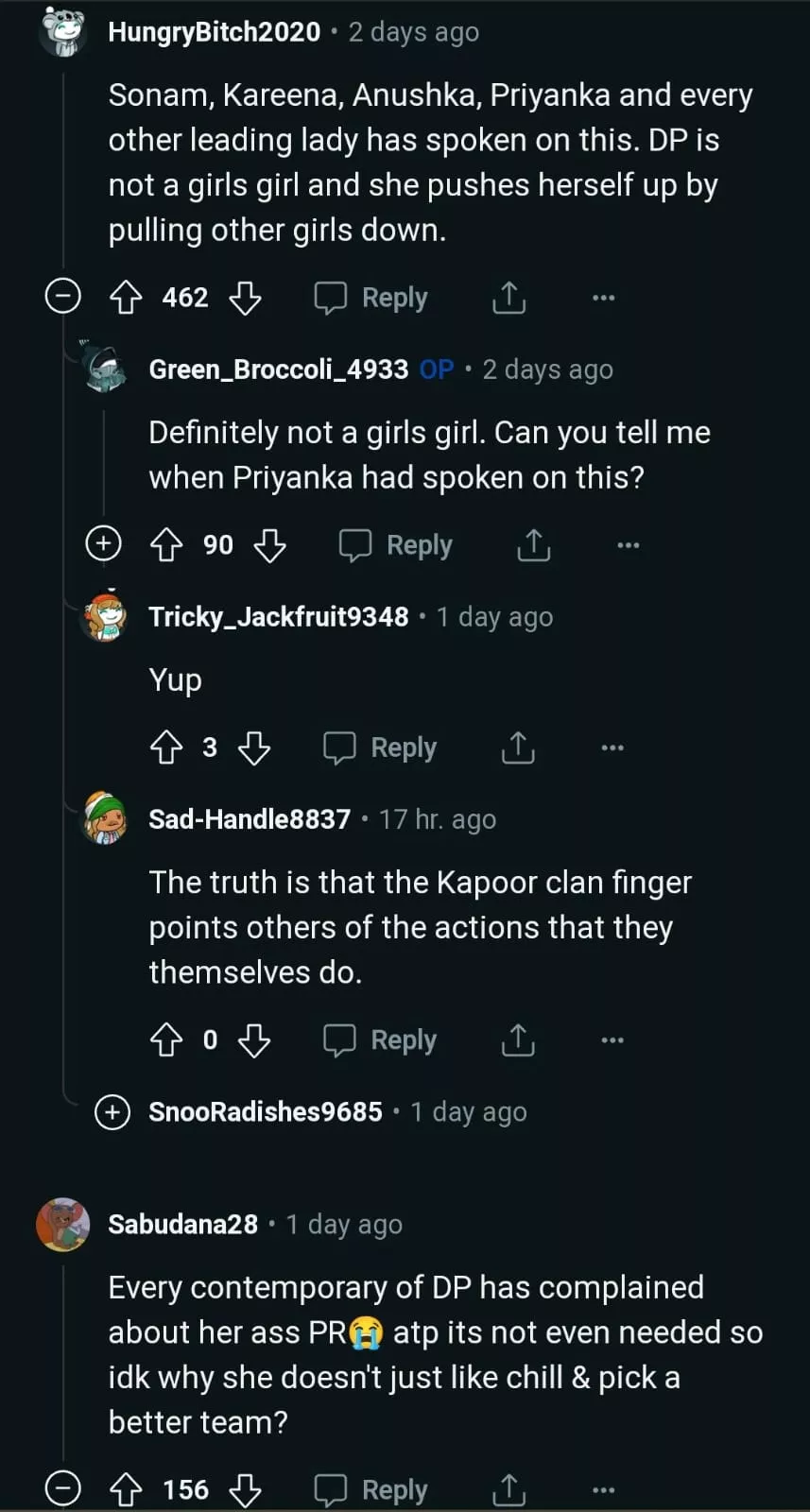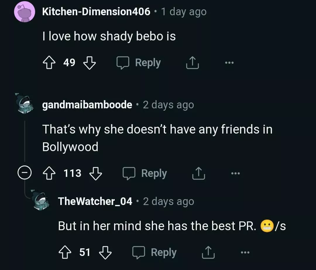 The video was shared on Reddit along with the caption, "Kareena hinting at Deepika’s aggressive PR." Thus, as soon as it was shared, netizens rushed to the comment section to react to it. While some talked about the time when Deepika's PR team allegedly released articles such as "Kareena needs to retire. Her time is over" and "Deepika is the new reigning queen", some mentioned how Kareena was once remarkably frank in answering such questions whereas she has become much poised now.