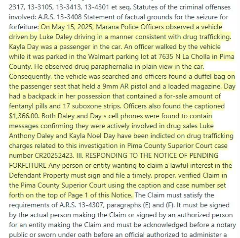 In 2025, Kayla Noel Day and Luke Anthony Daley were reportedly arrested on charges related to drug trafficking. A screenshot of an unverified report has been circulating online, which includes an alleged account of Kayla and Luke's 2025 crime. According to the report, on May 15, 2025, Marana police officials observed Luke driving a car in an unusual and suspicious manner. They kept a watch on the vehicle and while it was parked at a Walmart store, an official "observed dr*g paraphernalia in plain view". Following that, the car was searched, and a duffel bag on the passenger seat was found that held a 9mm AR pistol and a loaded magazine.