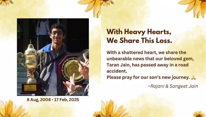 Our deepest condolences are with Rajani Jain and Sangeet Jain. Rest in peace, Taran Jain.