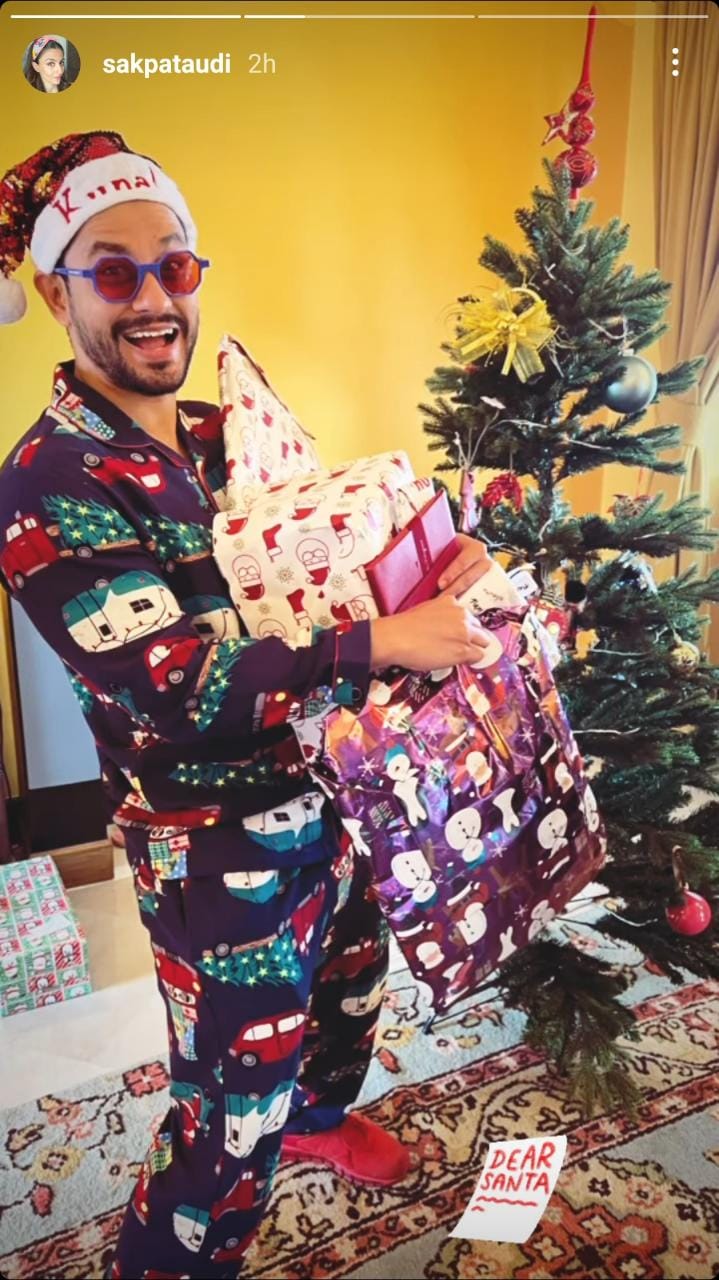 Soha even shared a few more glimpses from their Christmas celebration on her IG stories. In one of them, Kunal Kemmu stroked a pose with gifts wearing the Santa hat, and in another, the little munchkin, Inaaya, posed goofily in front of the Christmas tree.