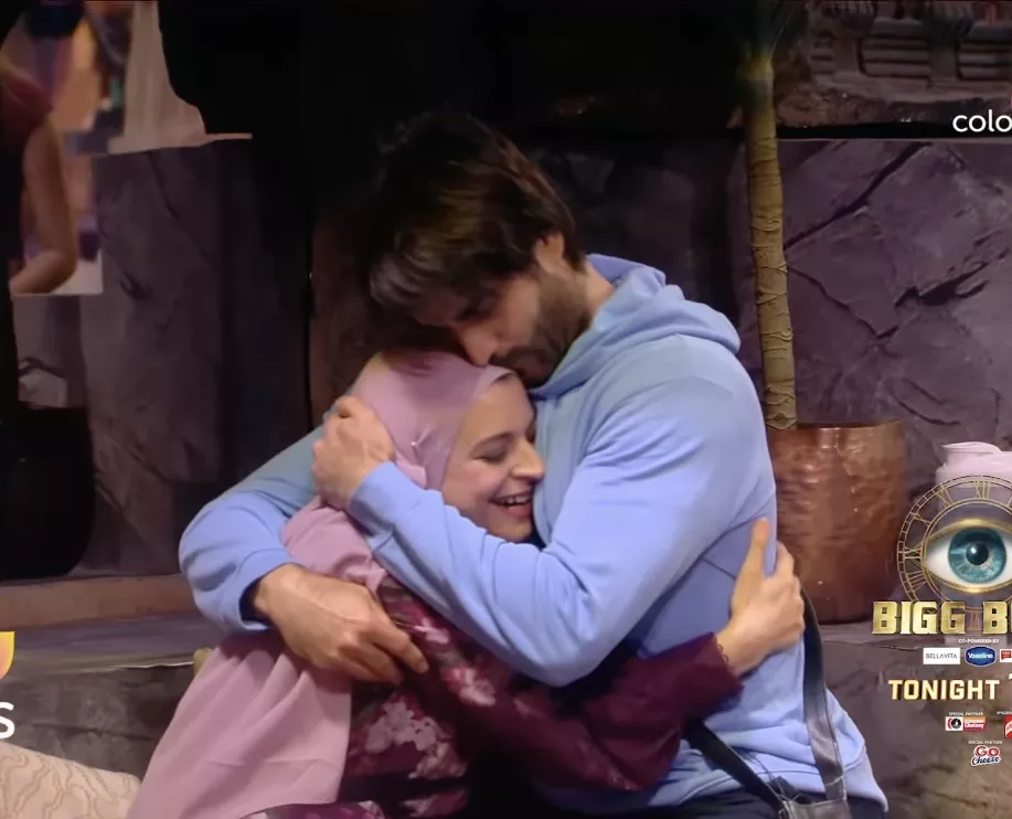 Vivian Dsena's wife, Nouran Aly was among one of the first family members to enter the house and meet her loved one. While Vivian had the opportunity to see his wife via a screen in the confession room, the feeling of having her sitting beside him and holding his hand clearly had a profound impact on him. Nouran was seen hugging Vivian as he lay on the bed and expressing her love and pride in him. The actor, unable to control his emotions, was seen breaking down in tears. He also addressed Bigg Boss as he jokingly said: