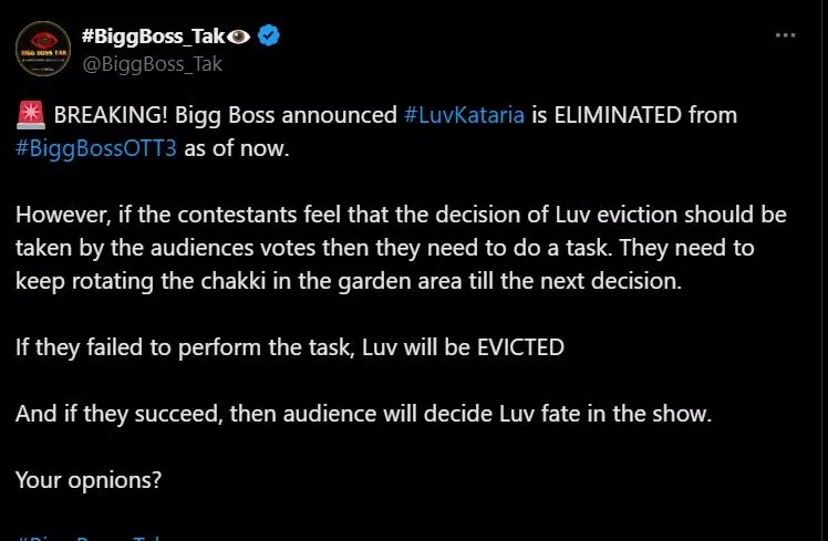 But as per the report, the elimination came with a twist as Lovekesh was given a chance and his fate will be decided by his co-contestants. If the contestants feel that Lovekesh's eviction would be decided by the votes then they need to perform a task, and if they fail to do so, then he will be evicted. Another report suggested that Lakshay Chaudhary could join the show as a wildcard contestant.