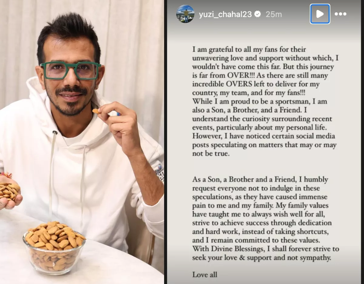 In a pun, Yuzvendra further added that there are still many 'overs' left to deliver for his country. He called himself a proud brother, son and friend. Let us remind you that he didn't call himself a 'husband' and didn't even mention his wife, Dhanashree's name once. He also talked about his well-wishers' curiosity about recent events in his life and highlighted that he had seen the posts, which may or may not be true. Yuzvendra requested his fans not to indulge in these speculations. He wrote: